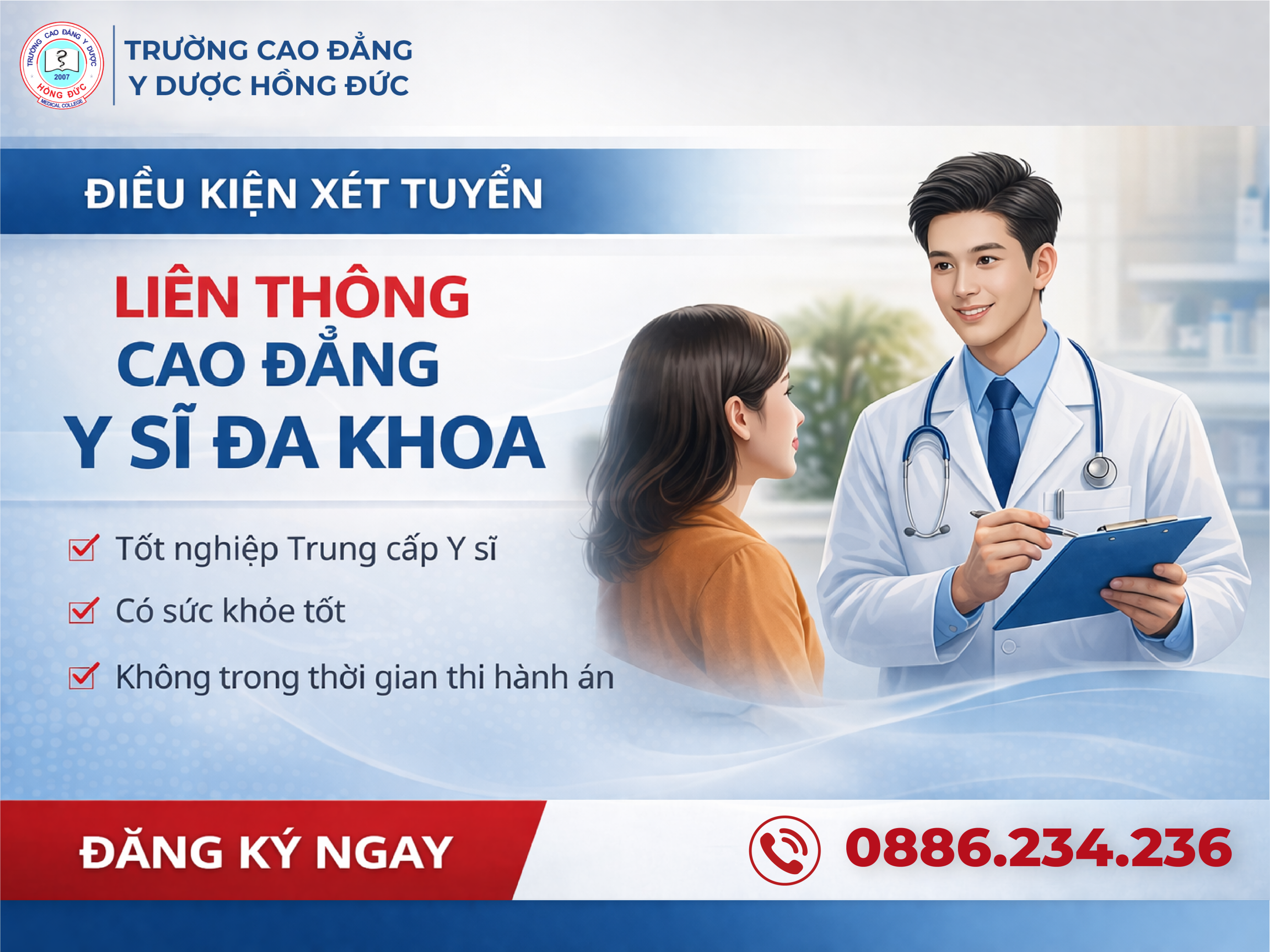 📌 Nhanh tay đăng ký xét tuyển Liên thông Cao đẳng Y sĩ đa khoa 2026 tại Trường Cao đẳng Y Dược Hồng Đức ngay hôm nay để không bỏ lỡ cơ hội: