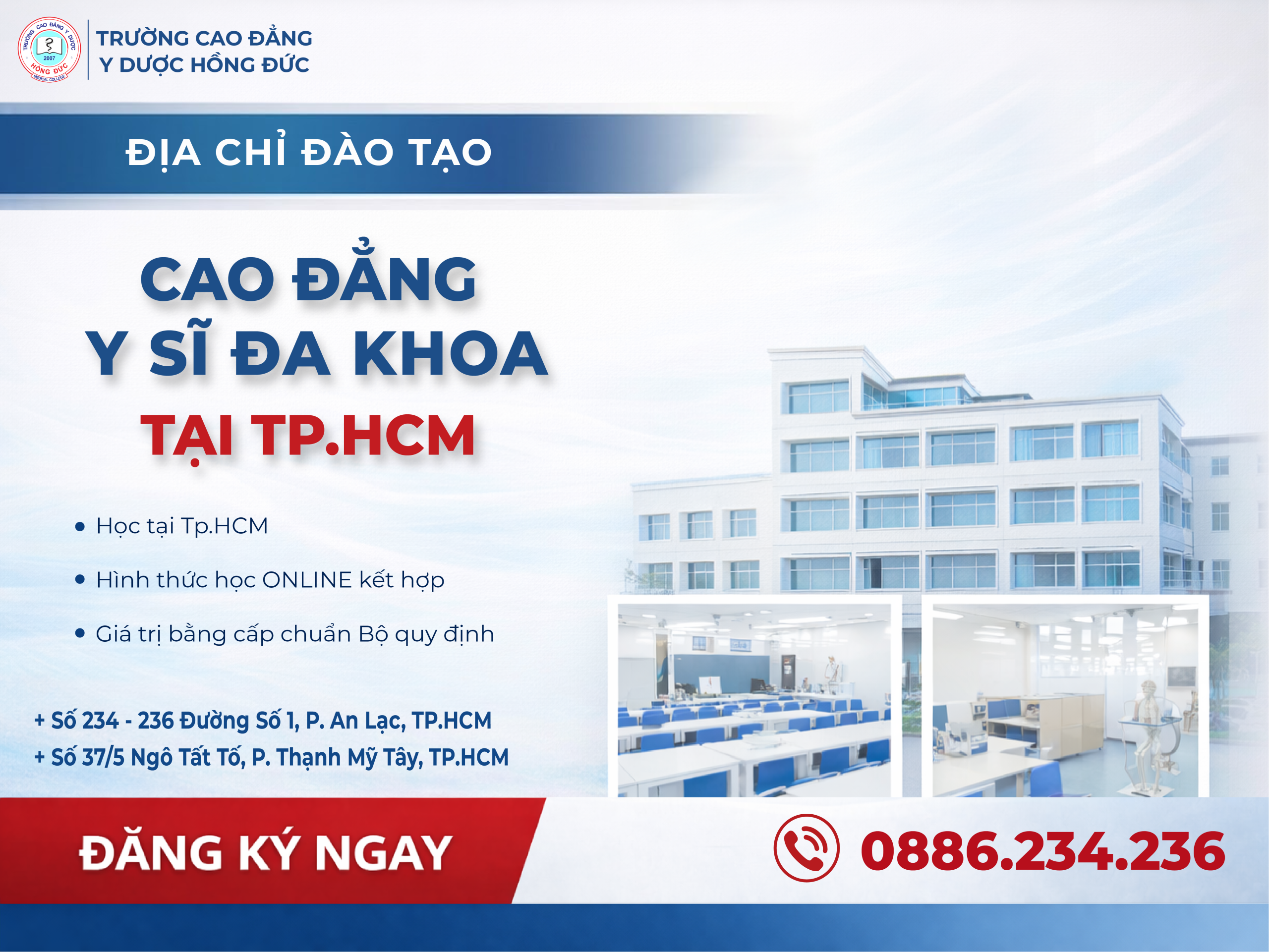 Việc lựa chọn đúng môi trường đào tạo sẽ là bước đệm quan trọng giúp bạn phát triển trong ngành y tế. Với chương trình đào tạo bài bản, chú trọng thực hành và môi trường học tập chuyên nghiệp, Trường Cao đẳng Y Dược Hồng Đức là một trong những địa chỉ đáng để bạn cân nhắc khi đăng ký xét tuyển học Cao đẳng Y sĩ đa khoa.